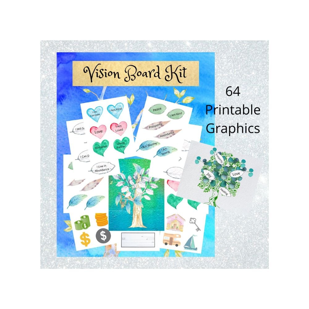 Use this Manifest Ultimate Bundle to guide you through the steps in achieving what you desire in life. Our Manifest Ultimate Bundle includes the 30-page Manifest Workbook, Journal, Vision Board Kit and 7 piece set of our beautiful watercolor Affirmation Cards Collection. The Vision Board Kit has 64 graphics that you can print and cut to place on your Vision Board along with guidance and examples.